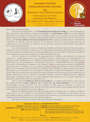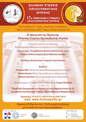 17o Πανελλήνιο Συνέδριο Ομοιοπαθητικής Ιατρικής - Μάρτιος 2016