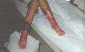 Δεσποινίς 27 ετών, καθηγήτρια Αγγλικής που γεννήθηκε και έζησε στην Αυστραλία, έρχεται με βαθιά αιμορραγικά έλκη σ' όλο το σώμα με διάμετρο από 2-10 εκατοστά. Η άρρωστη είναι στο σώμα και τα άκρα περιτυλιγμένη με ματωμένους επιδέσμους, κάτισχνη (42 κιλά) και φοβερά ανήσυχη. Παρά την υπόδειξη μας δεν κάθεται, αλλά κινείται συνεχώς, στηριζόμενη μια στο ένα πόδι και μια στο άλλο, σαν να χορεύει.